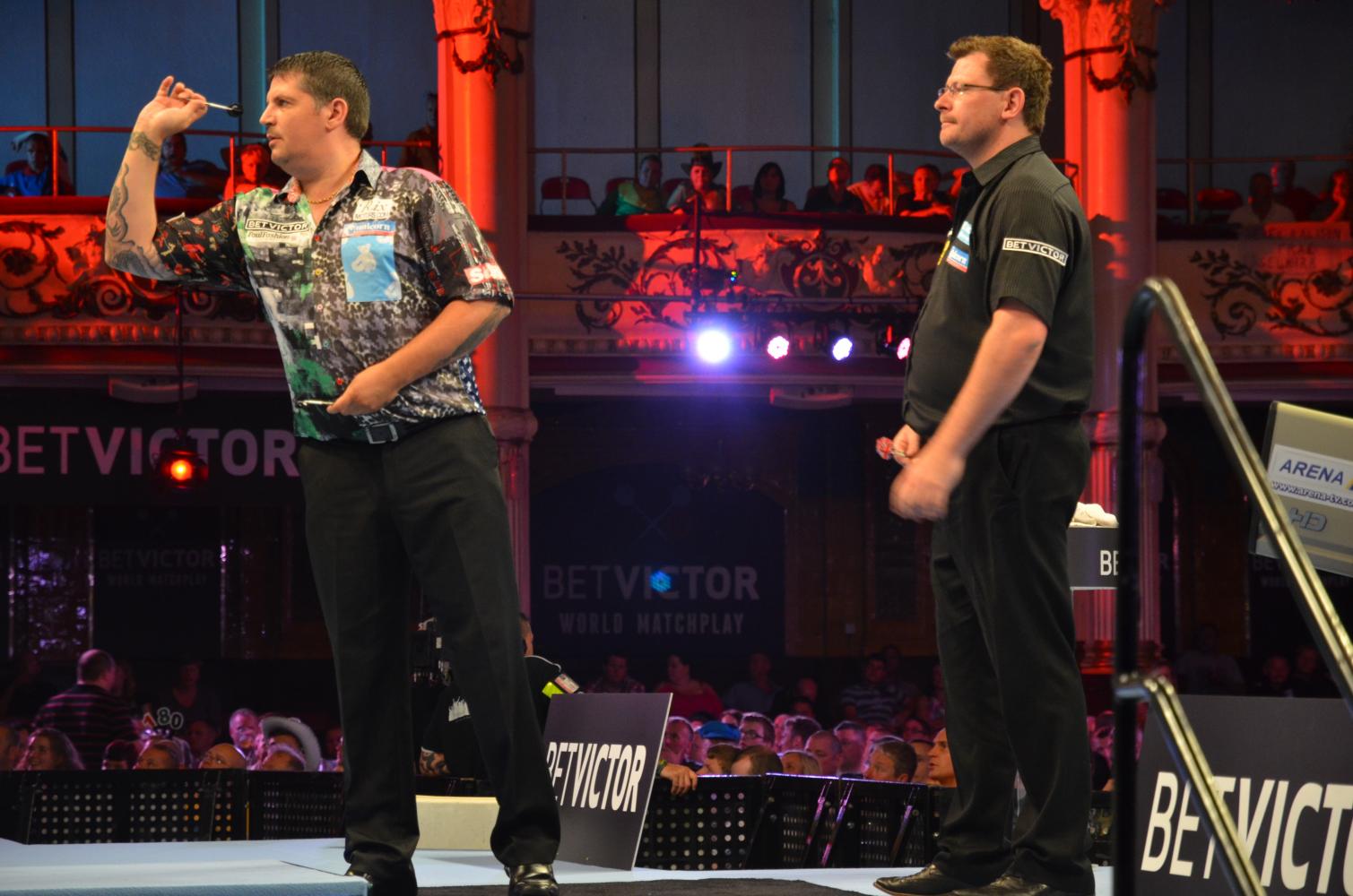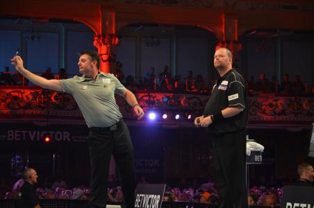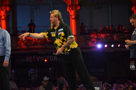 Wade war mit 3:6 und 6:5 gegen Gary Anderson zurückgelegen, der anscheinend in Blackpool nicht über die zweite Runde hinaus kommen kann. Anderson warf Finishs von 121 und 120 und dominierte das Spiel, aber Wade konnte sieben Legs in Folge gewinnen und seinen drei Leg Rückstand in eine 12:8 Führung verwandeln - ein herausragender 11-Darter hatte ihn in Führung gebracht, die er nicht mehr abgab. Mit einem 69er Checkout machte er schließlich alles klar.
