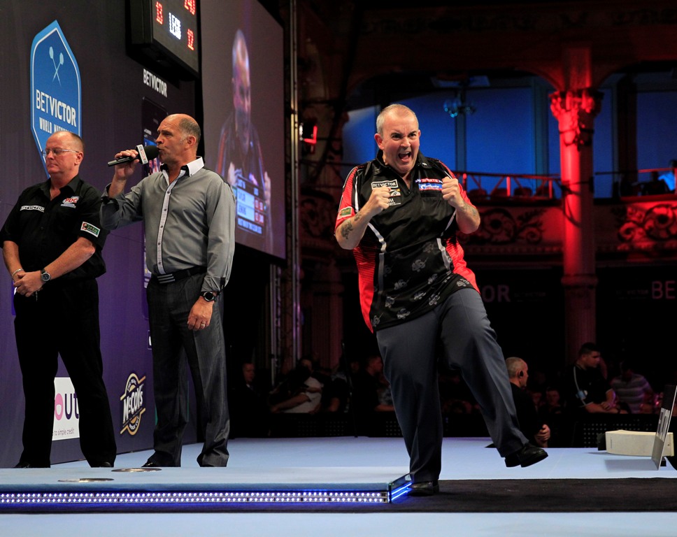 Zuerst musste der Titelverteidiger Phil Taylor 10 Maxima und einer kämpferischen Vorstellung von Justin Pipe standhalten, um mit einem 16:10 Sieg weiter auf Richtung Titelverteidigung bleiben zu können.