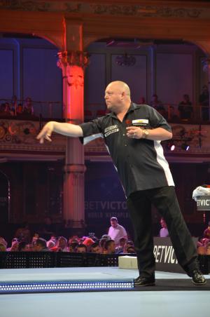 Dann bestrafte er Gilding für einen Fehlwurf auf die Doppel 20 mit einem 100er Finish, warf zwei 14-Darter und machte 97 Punkte aus. Sein zweiter 11-Darter schloss sich an und mit einem brillanten 10-Darter und einer Doppel 8 führte er mit 9:0, trotz einer 180 von Gilding. Mit einem weiteren 14-Darter beendete er seine tolle Vorstellung.