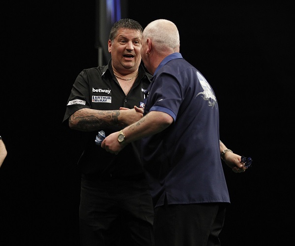 Am letzten Spieltag der Premier League in Rotterdam wird es zwischen Michael van Gerwen und Phil Taylor zum Showdown um den 25 000 Pfund Bonus für den Tabellenführer kommen. Beide gewann in Manchester ihre spiele. Titelverteidiger Gary Anderson sicherte seinen Platz in den Play-Offs.