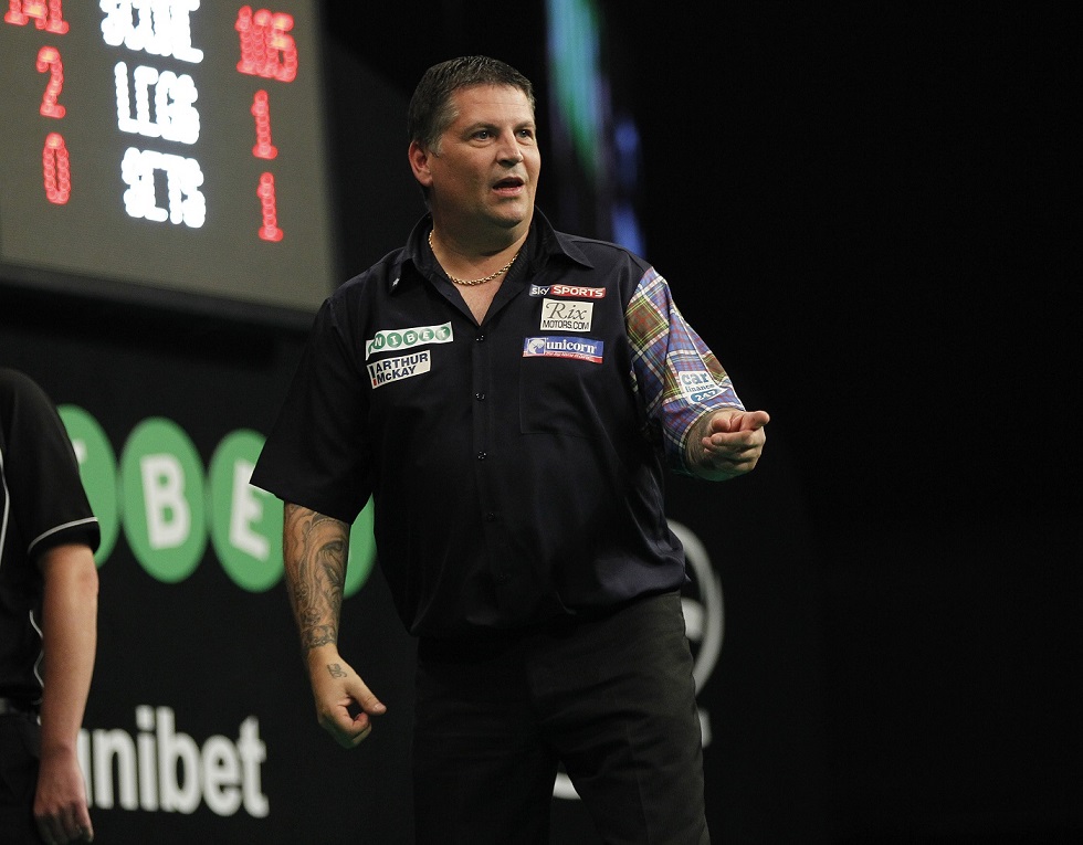 Weltmeister Gary Anderson musste erst einen Rückstand wieder wettmachen um sich dann doch gegen Kim Huybrechts in die Halbfinale zu spielen. Er schlug den Belgier mit 3:1 und steht zum zweiten Mal unter den letzten Vier. Das erste Set verlor der Schotte ohne dass er einen einzigen Dart auf die Doppel gehabt hatte. Mit dem zweiten Set konnte er dann aber ausgleichen und gewann dann sechs der nächsten acht Legs zum Sieg. In den Halbfinalen wird er auf van Barneveld treffen.