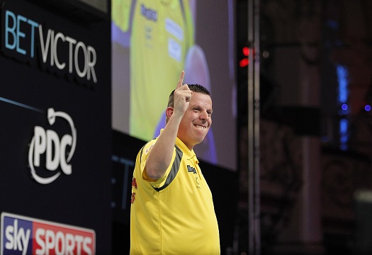 Titelverteidiger van Gerwen hatte bereits in der ersten Runde Jamie Caven mit 10:0 geschlagen und zeigte sich gegen den Australier Anderson ähnlich unbarmherzig - vor der ersten Pause lag der Australier mit 0:5 zurück. Mit einem 160er Checkout holte sich Anderson sein erstes Leg und nach einem 13-Darter kam er auf 2:7 heran. Aber van Gerwen vergrößerte mit einer Doppel 19 und einem 100er Finish seinen Vorsprung wieder und machte in den folgenden Legs alles klar.