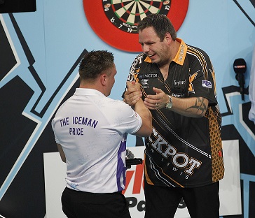 Adrian Lewis nahm Rache an Gerwyn Price, der ihn im letzten Jahr in der zweiten Runde besiegt hatte - dieses Mal gewann er mit 11:5. Vor dem Spiel hatten die beiden sich in den sozialen Medien eine Auseinandersetzung geliefert, im Spiel war es Lewis, der am Anfang die Schläge austeilte und sich eine 3:0 Führung erspielte. Price schlug zurück und kam auf 3:2 heran, aber Lewis gewann vier der folgenden fünf Legs und führte nach einem 100er Checkout mit 8:3 bevor er mit einer Doppel 16 den Sack zu machte.