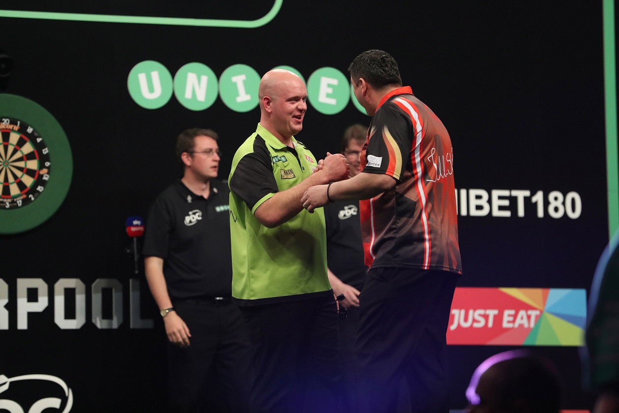 Suljovic widerstand zunächst dem heftigen Beschuss durch van Gerwen und warf selbst in den ersten beiden Legs vier 180ger. Er führte mit 2:1 bevor die Nummer 1 der Welt mit zwei 14- und einem 13-Darter das Kommando übernahm. Der Sieger der Champions League of Darts konnte mit einem 12-Darter noch einmal auf 4:5 herankommen, aber van Gerwen machte mit einem 14-und einem 11-Darter alles klar.