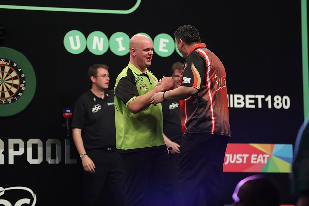Van Gerwen stieg mit sechs perfekten Darts ins Spiel ein und warf insgesamt im Spiel 10 180ger, sein Durchschnitt lag bei 107.45. Für den Niederländer war es der achte Sieg aus neun Spielen. Mansur Suljovic scheidet ebenso wie Gerwyn Price aus der Premier League aus, die im Turnier verbliebenen acht Spieler werden in den nächsten sechs Wochen um die Play-Off Plätze kämpfen.