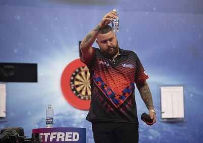 Mensur Suljovic, Finalist von 2018, kämpfte sich vom Rand einer Niederlage gegen Jamie Hughes zu einem 12:10 Sieg im Tie Break.
