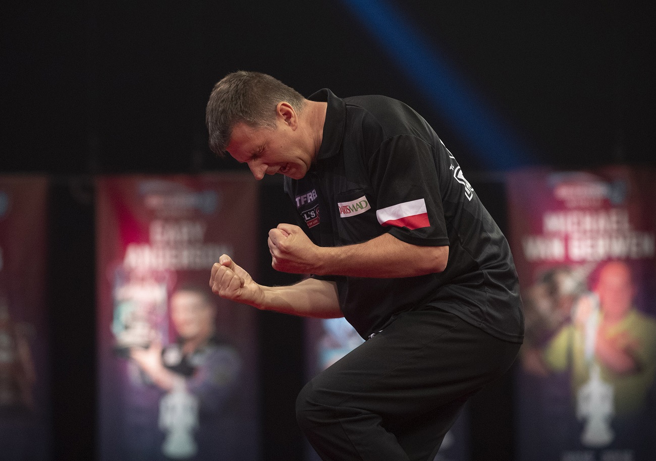 Smith begann den Abend mit einer beharrlichen Vorstellung und schlug die polnische Nummer 1 Krzysztof Ratajski mit 16:13 bevor Anderson sich seinen Platz in den Halbfinalen mit einem harterkämpften Sieg über den Michael van Gerwen Bezwinger Michael van Gerwen sicherte.