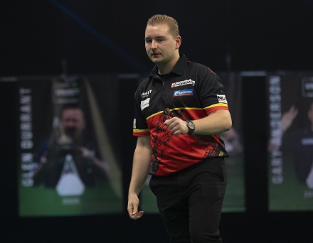 Der Versuch eines perfekten Legs kam im fünften Leg. Van den Bergh gewann das Leg und zog auf 4:1 davon. Aber der zweifache Premier League Sieger kämpfte sich zum 5:5 Ausgleich. Dann verwarf Anderson aber fünf Darts auf eine 6:5 Führung und van den Bergh sicherte sich schon einmal einen Punkt bevor er sich nach weiteren Fehlwürfen des Schotten den Sieg holen konnte.