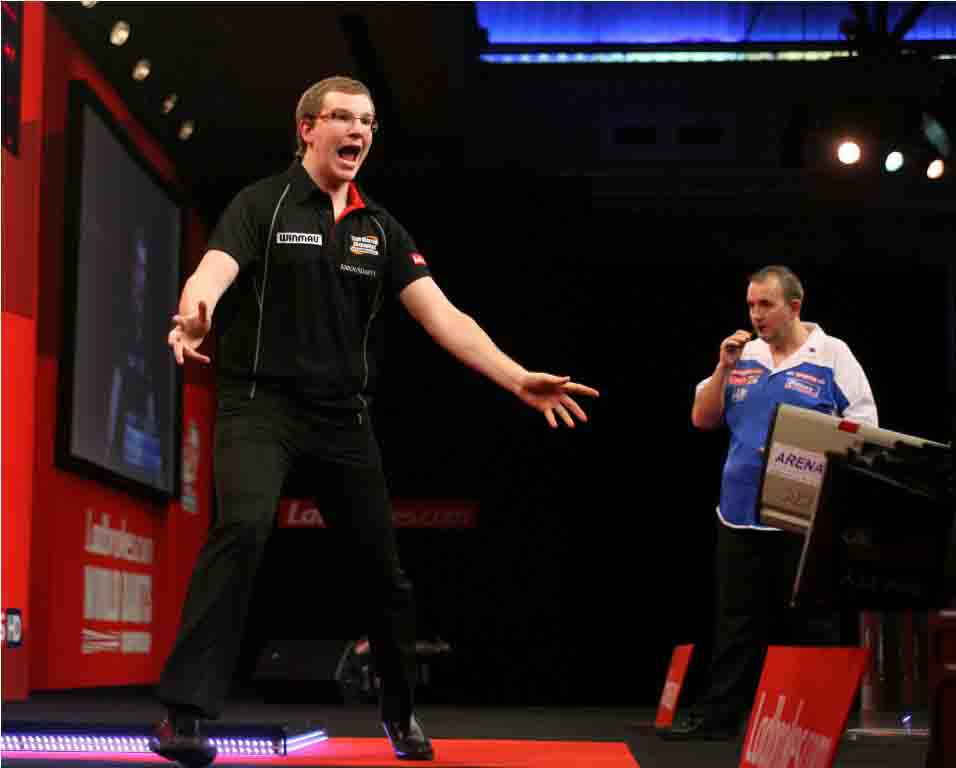 He hit an 88 finish to win the first leg before breaking Jenkins' throw in the next by hitting double top, and the third leg was taken by landing