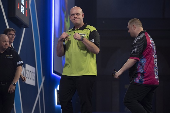 Van Gerwen was at his relentless best, firing in seven 180s and enjoying a 57.14% checkout success rate to advance to the last 16 where he will face Joe Cullen.