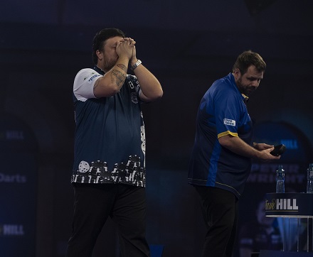 2011 and 2012 World Champion Lewis missed 15 darts at doubles in the opening two sets, winning only one leg as his opponent opened up a comfortable lead.