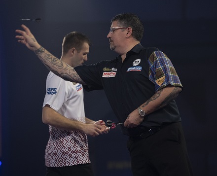 The Kettering thrower raced through set three in just 41 darts before finishing 104 and 102 in successive legs as he wrapped up victory by winning the fourth 3-1 to move into the last 32.