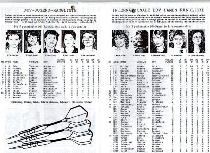 In the 1980s the DDV rankings still were "International DDV Rankings" in which you can find beside Colin Rice quite a number of British, American and Canadian players among them Abbie Burke from Munich who was four years in a row German Pair's Champion. Of him it is told he decided to retire from darts after he had practiced for a few days with Phil Taylor who stayed in Munich for exhibitions.