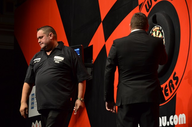 I can't say...Usually I focus on the board and on my own game. But looking at how I played here in the group matches might be its easier when you don't know your opponent! Only look how I played against Terry Jenkins - I didn't know him at all and never played against him before.