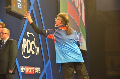 Russian darts player Aleksandr Oreshkin, born 1961, for the first time stood on the stage of the Alexandra Palace in 2016. He had qualified by the Russian World Championship qualifier. His strange throwing action caused a stir and seemed to distract his opponents He won his preliminary round match against Paul Lim and in the first round brought Mervyn King at the brink of defeat. 2016 and 2017 he war together with Boris Koltsov Team Russia in the PDC World Cup. As well in 2017 he together with Boris Koltsov won the WDF World Cup pairs. Oreshkin qualified again for the PDC World Championship 2018 where he'll meet in the preliminary round German Kevin Münch.