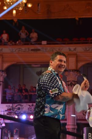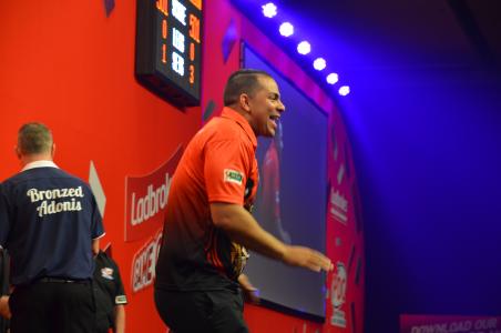 The bookmakers see him as one of the outsiders for the title - favourit is number 1 seed Stephen Bunting who'll play on Sunday afternoon.
