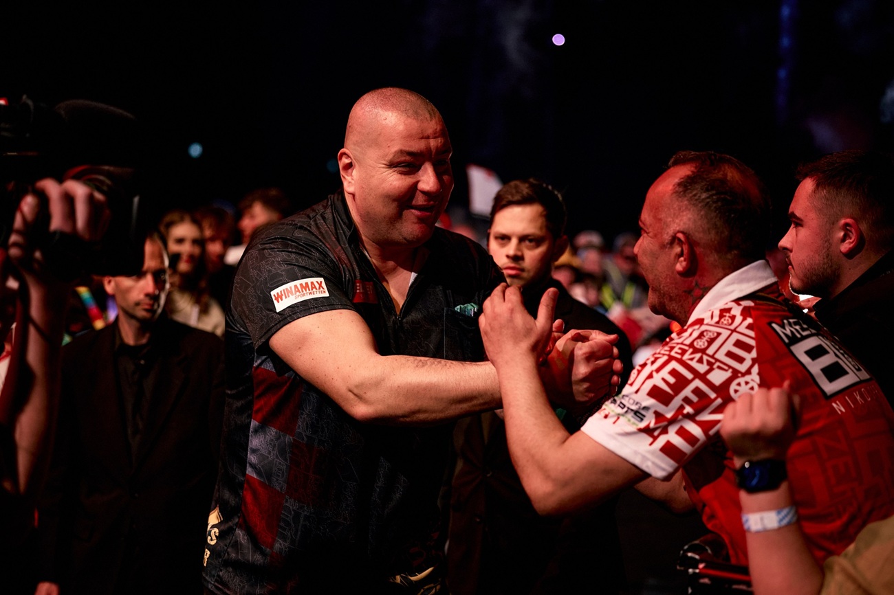 Stephen Bunting and Gary Anderson were nip and tuck in the third match which went into overtime before Bunting won it 12:10. The last match of the night was similar close - Jonny Clayton won it with 11:8 against Mike de Decker.