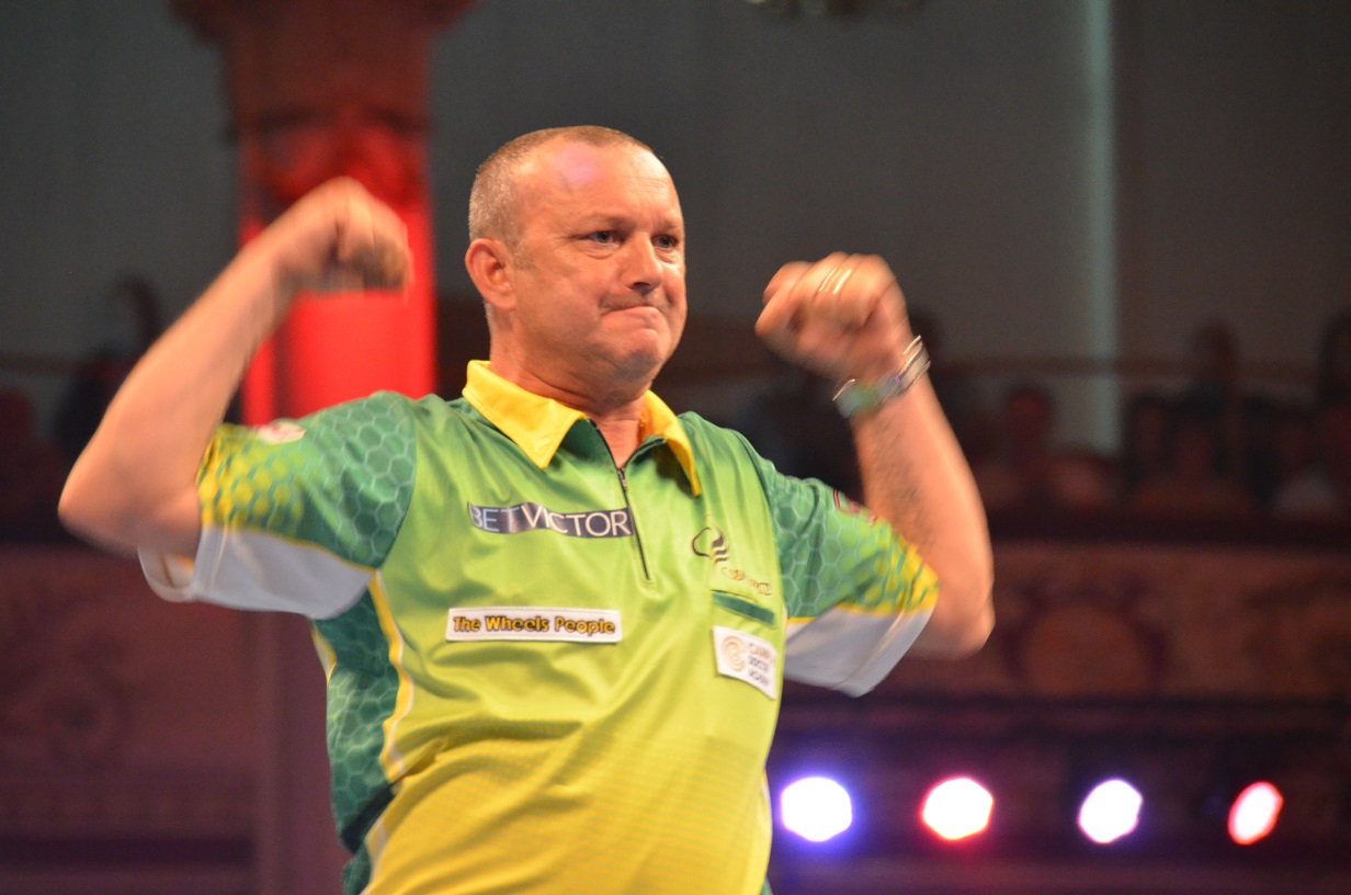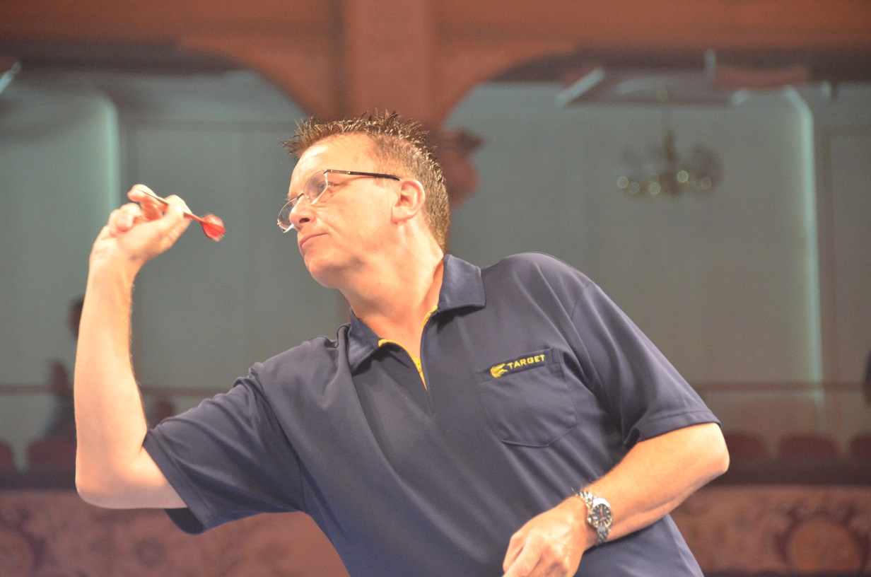 The fourth evening with the first four matches of the second round in fact started around three quarters before the official schedule with a surprised for the already assembled crowd - for a demonstration match Keith Deller and John Part came on stage. As the players were surprised as well they were not really prepared but nevertheless you can say John Part was by far the better player, he scored better, finished better and even threw a 180 in those three legs. One can imagine he still could win the one or other "normal" match after this.