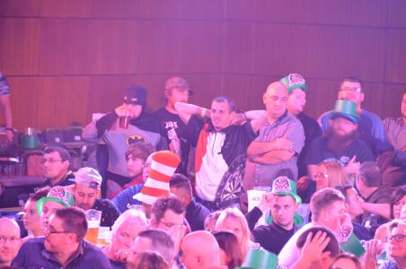Tuesday evening with the last group matches of the groups B, C, F and G was my last evening in Wolverhampton as well- The Civic Hall was not really full but the atmosphere nevertheless great and we all had a thrilling evening. For this last group matches the players finally got an own "single" walk-on. James Wade and Peter Wright - both already qualified for the next round - opened the evening with their matches. Dave Chisnall finally found his doubles again and won against Wade. For Wade the match was of interest while by this defeat he lost the first place in the table and now had to play not against Chris Dobey but against Benito van de Pas. Peter Wright won against Ted Evetts - a match without consequence.