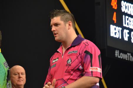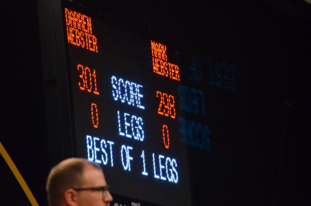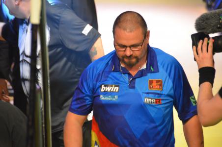 First on was group D in which all the players still had a chance to progress. First Mark Webster and Danny Noppert came on stage and Webster would have been through with a win. But that was not Noppert's plan. He played his best match of the event and defeated Mark Webster 5:2. Now all depended on Darren Webster against Daryl Gurney. Would Webster be able to win him and Gurney would be in round two. But Gurney played another good match and Webster was probably too tense. Gurney won - 5:2 as well - and progressed into the next round. Darren Webster and Mark Webster would meet at the end of the night for a nine-dart shoot- out. Danny Noppert had as well two points but won fewer legs.