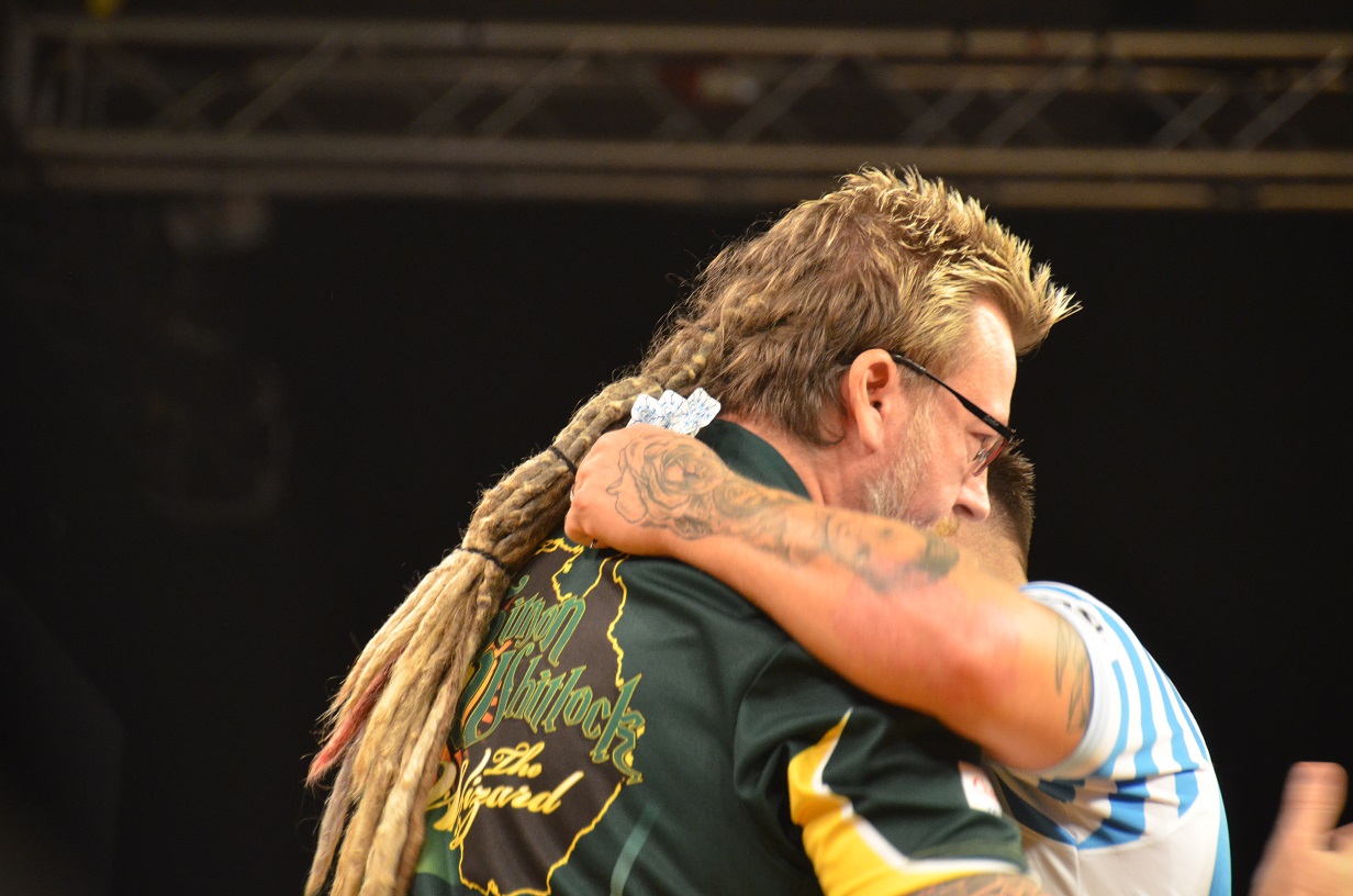 After that it grew more dramatic. Glen Durrant lost for the second time - this time against Andrew Gilding. I rarely had seen Gilding playing like this before and Durrant found no way to get rid of him or even to overcome him. And of course the fly chose this match to reappear on stage and this time attacked Durrant. Both players had an average over 100. Durrant was not yet out after his defeat but Simon Whitlock had decided not to lose against Gerwyn Price and played his probably best match of the year with a 108 average. Price averaged 104. It was a close win but nevertheless Durrant now was out of the tournament and Whitlock and Price progressed.
