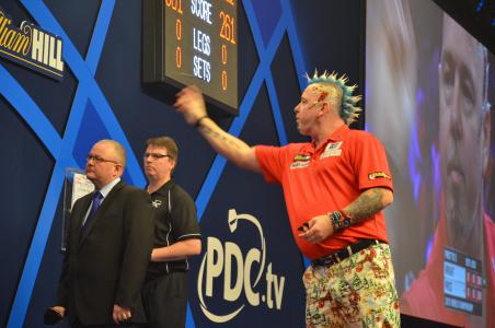 But before we first had walking Christmas tree Peter Wright against the muscular Gerwyn Price - a former rugby player who still looks like a rugby player. Price was another of this year's debutants and he showed a quite good performance though it was not good enough to prevail against Peter Wright.
