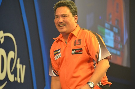 The World Championship day again begun with a Preliminary Round match - between Masumi Chino from Japan and Tengku Sha from Malaysia. The Japanese appeared with a large content of flags and supporters, but the very slim and tall Chino from the beginning looked like the weaker player though he was cheered loud by the crowd. It looked the first set none of the two players really wanted to win till Chino finally hit the double. But in the other two sets it was "clear advantage" for Sha, who this year won one of the World soft-dart tournaments. Sha won 2: and will meet in the last match of the afternoon Benito van de Pas. Should van de Pas have one of his weaker days Sha could have a chance. You can see more recently that the so called exotics start to make and impact and are no longer only cannon fodder.