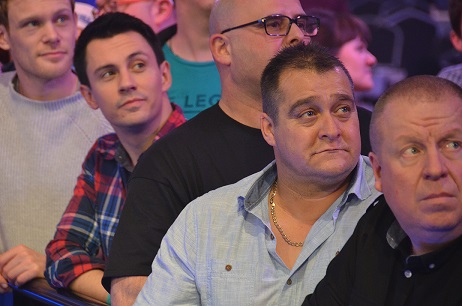 The complete venue seemed to have assembled at the walk-on when Phil Taylor was announced and there was some pushing and some arguments. Once again Corey Cadby and Platt number two sat in the VIP part of the hall. During Taylor's walk-on all mobiles were switched on to catch at least a bit of Taylor. Compared to that it had been very quiet when Michael van Gerwen walked on to stage... Taylor dominated the match from the start and won the first two sets without any problems. Meanwhile the security had its hands full with removing spectators from the venue - I never did see it happen on such a scale before. The players on stage managed to stay not impressed and Taylor won in the end with 3:0 and an average of almost 102.