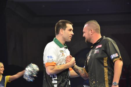 Der Nachmittag ging mit zwei irischen Spielern und zwei irischen Siegern weiter. Zuerst trat der Ire William O'Connor, der sich wie sein nordirischer Kollege Brendan Dolan über den Pro Tour Order of Merit qualifiziert hatte, gegen den Sieger des Westeuropäischen Qualifikationsturniers Yordi Meeuwisse an. O'Connor hatte schon ein paar Mal an der PDC Weltmeisterschaft teilgenommen, aber seine Auftaktspiele bisher immer verloren. Dieses Mal lief es besser für ihn. Er hatte einen guten Start und holte sich das erste Set mit 3:1. Die beiden folgenden Sets dominierte er nicht mehr so und beide Sets gingen in ein Entscheidungsleg, dass aber beide Mal der Ire für sich entscheiden konnte.