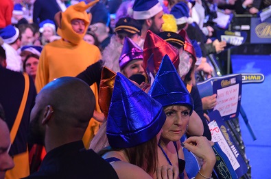 The fifth day of the World Championship was after three long darts days the first day with only an evening session - again with three first round matches and one Second Round match. Despite its being a Monday evening the venue was well filled as was the press room. As it turned out it was not because of Raymond van Barneveld who played the last match of the night but because of Anastasia Dobromyslova. After her match a lot of the journalists and photographers disappeared.