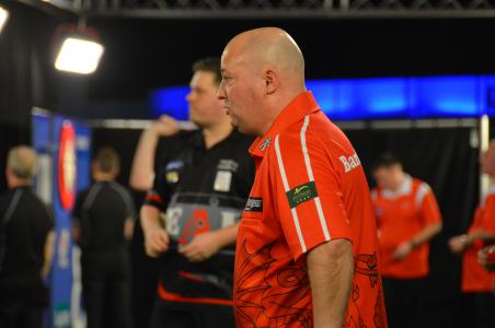 Ronnie Baxter - another name from the past as he was once a top 10 player - till now played a good tournament and survived the first day as did Alan Tabern. Simon Whitlock showed a good performance and some young dart fans in my accommodation think he might be able even to win the event. Mark Webster showed a lot of battle in his third round match against Ross Twell, impressive was the unknown Martin Lukewell. Peter Wright had an easy match against James Richardson but problem with a strained ankle.