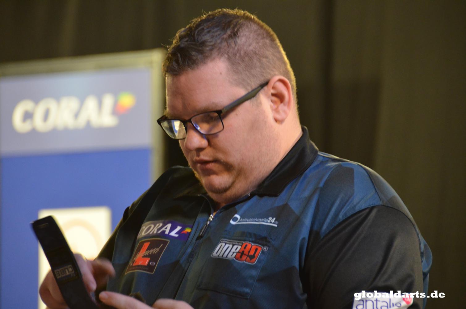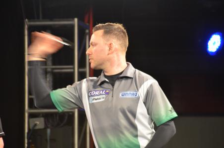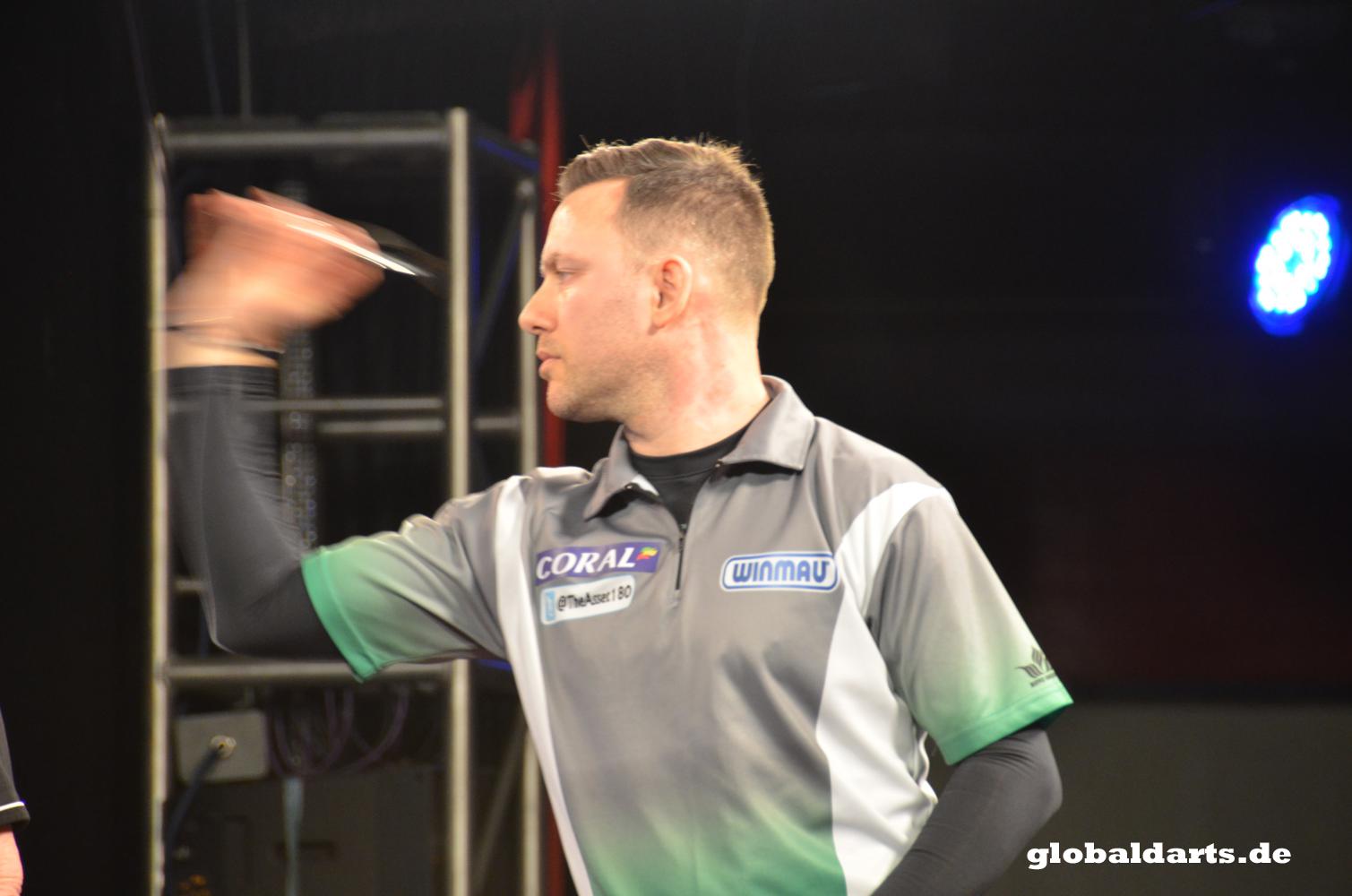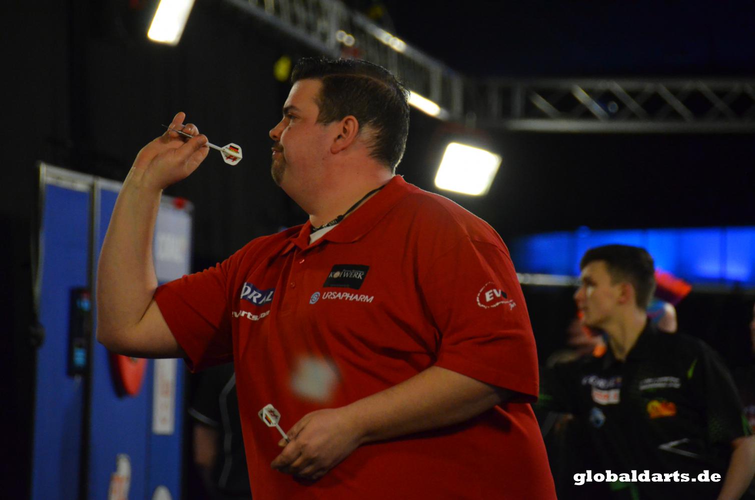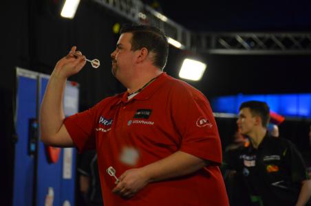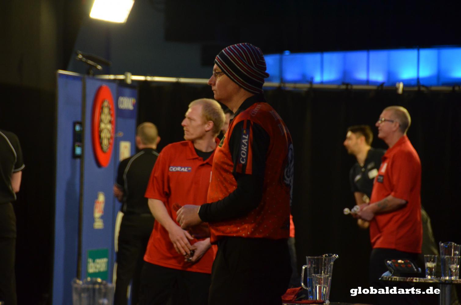 Looking at the German speaking participants: Gabriel Clemens caused Kim Huybrechts some problems and Huybrechts had a hard time to get rid of him but won the match in the end. I felt sorry for Clemens but at least we for once did see a happy looking Huybrechts. Martin Schindler didn't look like his rather complicated journey to Minehead had tired him and won 10:7 against Ryan Harrington.