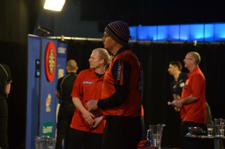 The PDC decided not to use the big stage in the Sky Pavilion - it was bitter cold in there and it would have been stupid to heat the big room only because of the players. The matches scheduled on the main stage were moved to the second stage and the matches scheduled on the second stage were moved to the boards 3 - 8. Around the second stage the temperatures were quite agreeable while it was freezing cold in the venue with the boards 3 - 8. The players had problems to keep warm and to hinder the darts to freeze to their hands. Perhaps the PDC should offer the players instead of cold water hot drinks like tea or coffee.