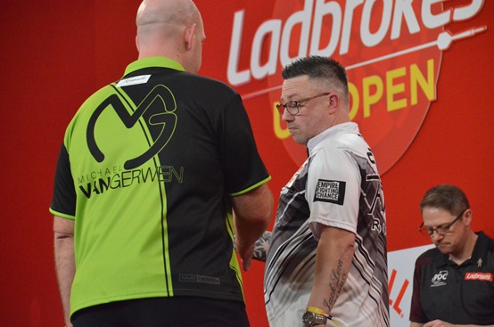 who had triumphed over Gerwyn Price went out against Damon Heta.