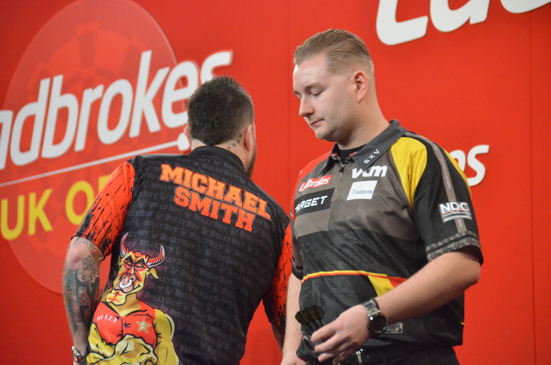 deciding little bit better. Reigning champion Dimitri van den Bergh was eliminated as well he was defeated by Michael Smith who was in a weak much still far better than van den Bergh. Luke Littler for the first time was a little bit in trouble against Krzysztof Ratajski but won with 10:8.