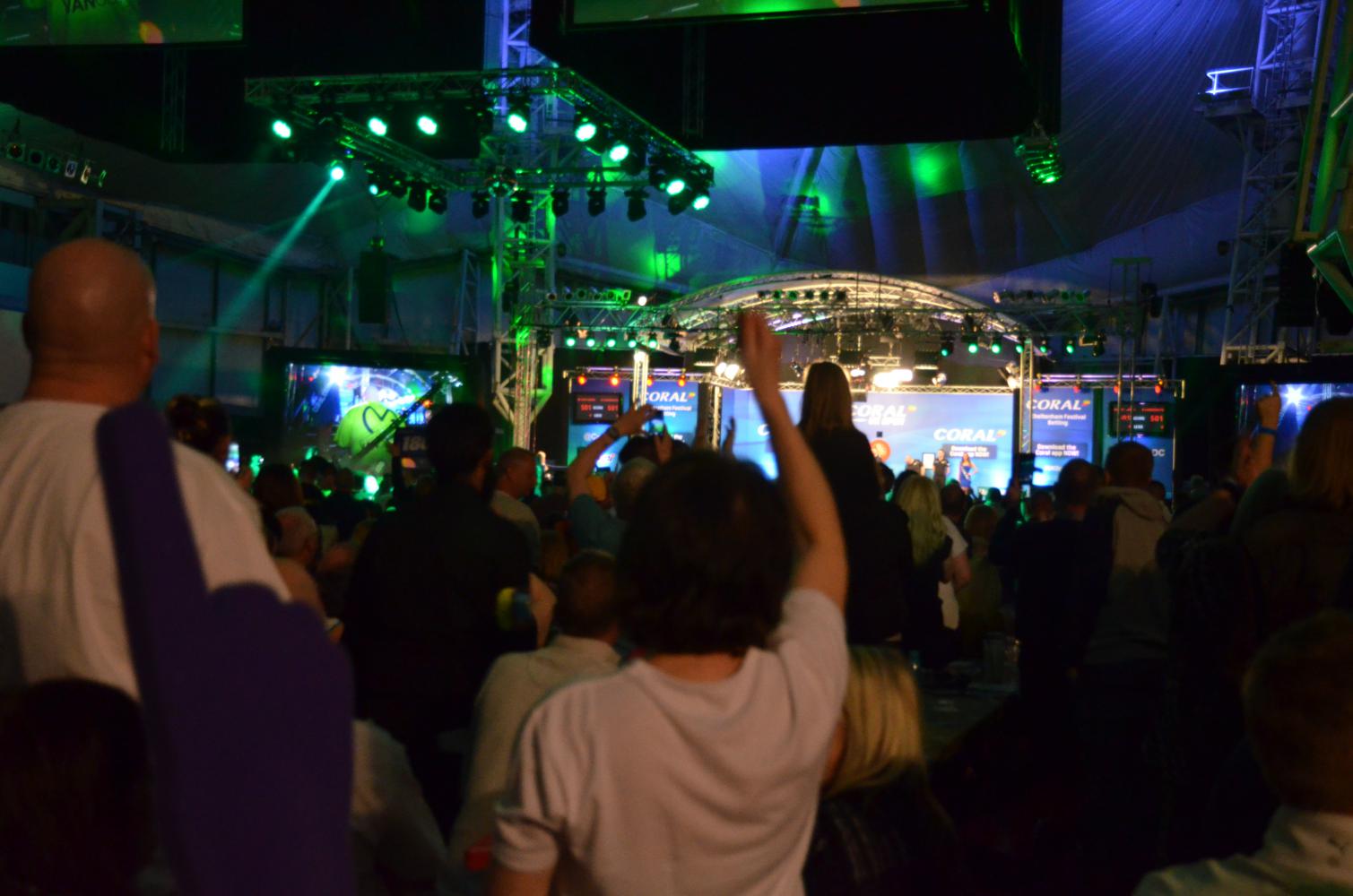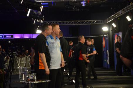 In the evening again the Centre Stage was the most crowded venue of the three. It only changed when most matches there were over and Michael van Gerwen entered the main stage. But in the evening quite a lot of well known players could be found there. Raymond van Barneveld was among them, who was not really happy that he couldn't play his match against David Pallett on one of the two staged. I t was a very close match but the Barney Army didn't abandon their idol and helped him over the finishing line. It was not the only close match. Michael Smith versus Daryl Gurney was a battle as well - not only on the dartboard but verbal as well. The last match of the day took place in Centre Stage as well - there amateur qualifier Barry Lynn defeated finally already during the draw Brendan Dolan 9:6. A clear loser was the only German participant Rene Eidams who had no chance at all against an unobtrusive James Wilson - to be sure not an unbeatable opponent.