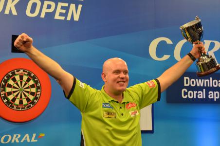 There were some problems on the last day of the UK Open. Before one Walk-On the camera man had disappeared. At another time the player was there but his walk-on girl not. And then the big scoreboards failed for some matches and one was groping in the dark regarding score lines, legs played and scores thrown. Luckily the players had no problems as they could read the chalkers boards and I only then realised how often Michael van Gerwen has a look at his own scoreboard and at the scoreboard of his opponent. Not that he has to worry at the moment; he blasted all three opponents on this day. So one couldn't say those three matches were really exciting. While Barry Lynn and Phil Taylor, who by the way produced beside Michael van Gerwen the best performance, at least tried to fight, Peter Wright seemed to have given up hope even before the final started. Nevertheless he almost threw a nine-darter in the second last leg - what a pity he didn't hit the double 12.