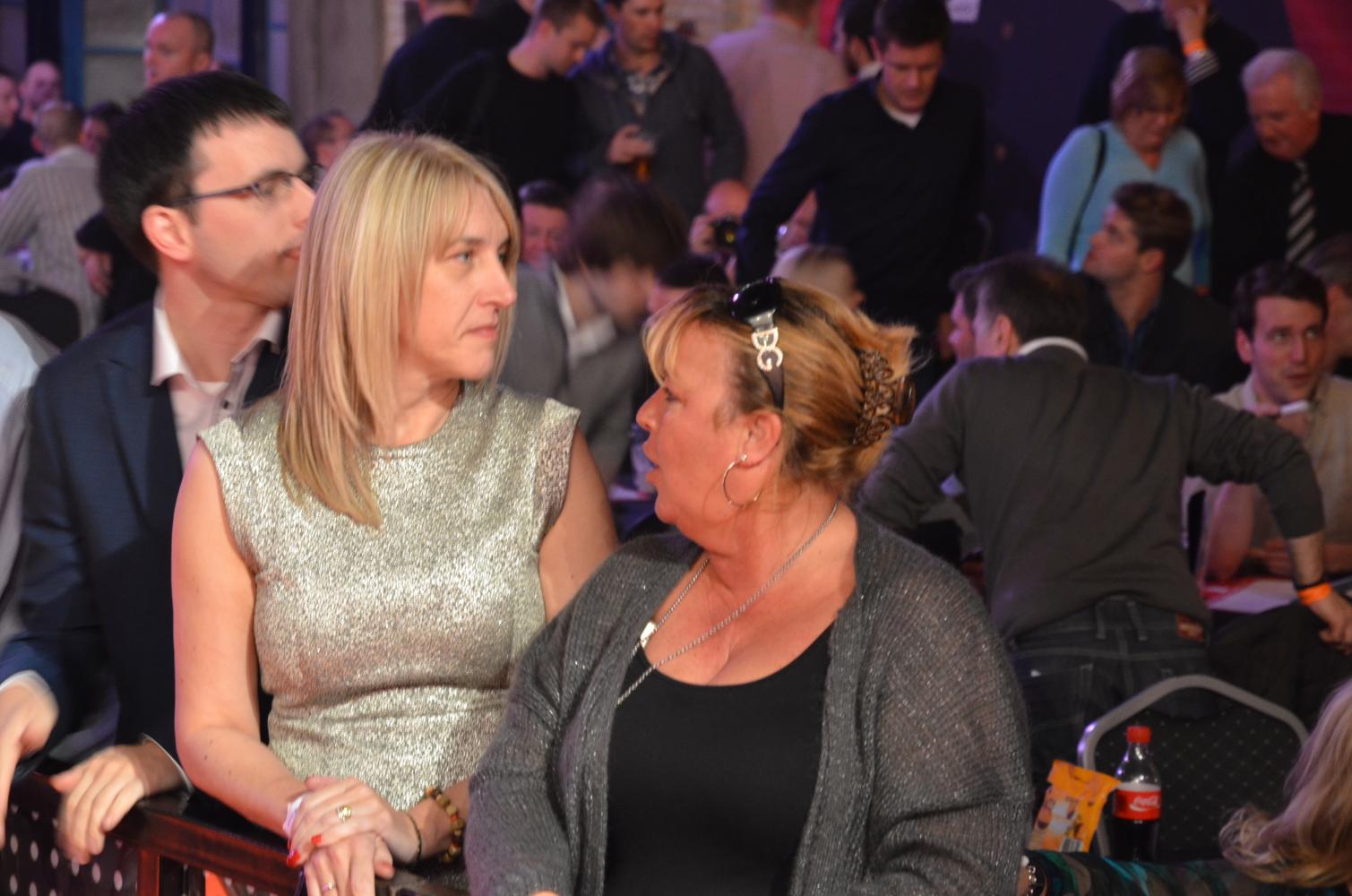 That they sit there is for many of the player's big support and one can often see that the players dart a glance at the partners when it gets difficult on stage or when they have done especially well. Especially distinct it's with Robert Thornton and his wife neither (though till nor I never did see her sit in the VIP area nor is she really made up). For the wives and partners it's not only fun to sit there because they always have to control expressions and reactions. And - as some of them say - they often feel completely powerless when something is going wrong on stage besides glancing encouraging at them. According to the cause of the game the partners are afterwards a nervous wreck - especially during such important tournaments as the World Championship.