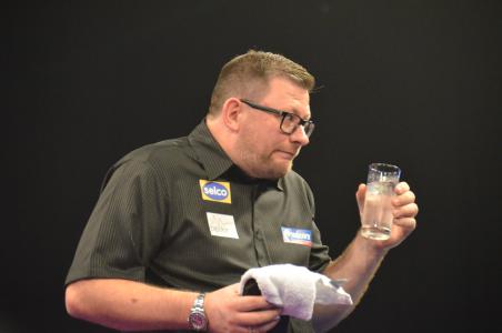 This time the break between the two sessions was shorter and soon with Steve Lennon and Wesley Harms the first losers of the Groups A-D came on stage. None of the players played well. In the end Lennon prevailed 5:4. Next were Darren Webster and Dave Parletti. Webster was just better and played solid darts. After his win Webster explained that this time he had paid extra attention when infusing the water.