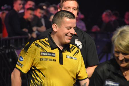Jamie Hughes, a real Black Country boy, who was in action on the third day of the tournament, wears the flag of the Black Country on his darts-shirt.
