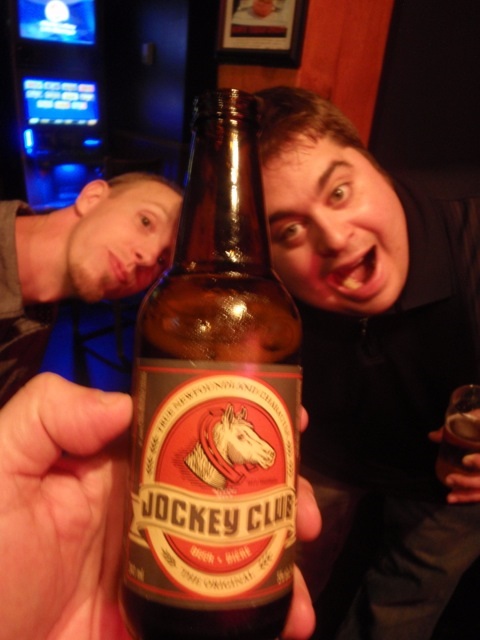 Eventually, screech time rolled around, and the six of us strode back to Christian's, up and inside the now packed bar, waiting for the ceremony to begin. With a whoop of cheers, a man dressed as a fisherman-rain slickers and hat and a wooden oar-came out singing a song before shouting out yarns of almost intelligible English. It was gibberish to most of us, unaccustomed to the heaviest of Newfoundland accents, but the whole act was nonetheless hilarious. Toothpicked baloney was passed around to the two dozen "screechers", I assume as some sort of palette cleanser. Soon, out came the cold dead cod, and after reciting the ritual's choice words, everyone gave it a kiss, followed by a shot of Screech, named for the sound you make after drinking it. While our teammates laughed on, Robbie and I received our official diplomas as honorary Newfoundlanders, and back down on George Street, we took a picture. Robbie and I were now screech brothers.