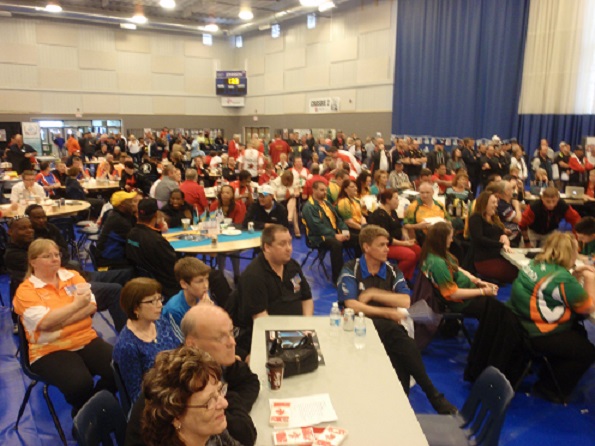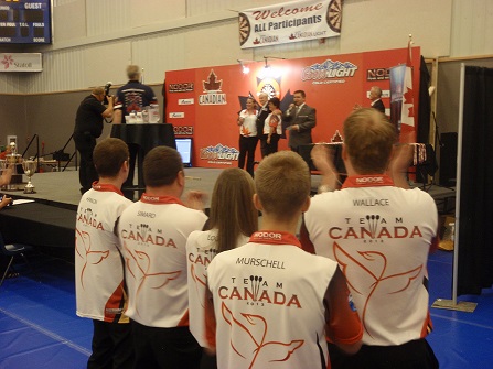 The crowds grew thicker for the ladies doubles finals, with Team Canada's Cindy Hayhurst and Diane Gobeil falling to Trina Gulliver and Hedman. But, the local Canadian crowd finally got what they deserved in a thrilling victory in youth doubles, with Dawson Murschell and Alicia Looker winning in ten legs versus Australia's Rundle and Smith. Finally, the team event was ready to begin: USA versus Scotland for a place in the history books.
