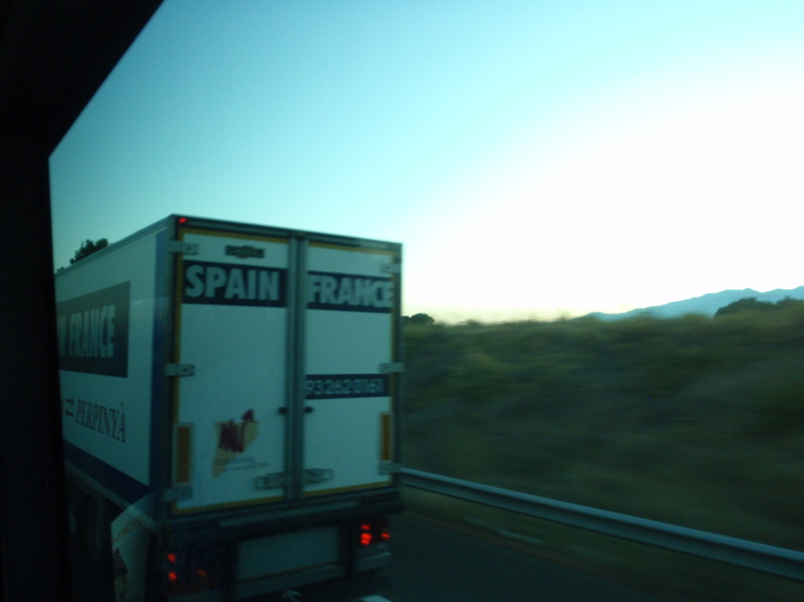 I was alone again and enjoying my thoughts when a young Bulgarian man across from me began talking. After some conversation, I had another temporary travel companion to point out views to. I don't remember his name, but he was nearly destitute, even showing me the last few euros in his pocket. He was going to Barcelona to look for work. Nearly broke myself, I still found enough sympathy to be helpful, promising to try and find us some affordable accommodations when we arrived.