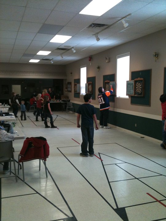 Ron: I've been married for fourteen years with two wonderful children, both of whom play darts. The 10 year old is just starting and my 13 year old is top in league and headed to provincial championships. I run a youth dart league that has won district championships, local shoots and heading to provincials. I have taken the league in our small town from five to twenty-one kids this year from last, and expect more next year, as I have proven I can teach anyone the sport of darts!