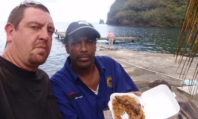 After a breakfast buffet and "bing", we were off with a driver, out of the bustle of Kingstown, on a winding coastal drive, passing signs of Tomas, and stopping at shanty store for drinks and ice. First, we made way for Wallilabou Anchorage to dance on the docks where Disney and Johnny Depp discovered swashbuckling gold. Nearby, we took a quick dip in a small picturesque waterfall. By afternoon we were at the Botanical Garden, where an original breadfruit brought by Captain Bligh towers over the orchids. The closest thing to darts I found was a boy carrying a long thick piece of bamboo down the road; the driver giggled with his own childhood memories, explaining that the boy is making a 'cannon' to shoot at his friends house, a popular pasttime for kids in the local neighborhoods.