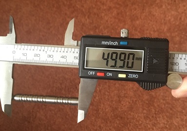 On the callipers the darts come out at 49.9mm in length with a uniform thickness of 6.37mm. The darts are drilled out 9.43mm in the rear.