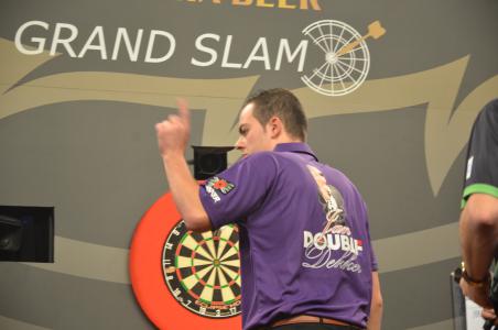 Dutch star van Barneveld, the 2012 Grand Slam champion, picked up his second victory of the Group Stage at the Wolves Civic with a dramatic 5-4 win over Vincent van der Voort.