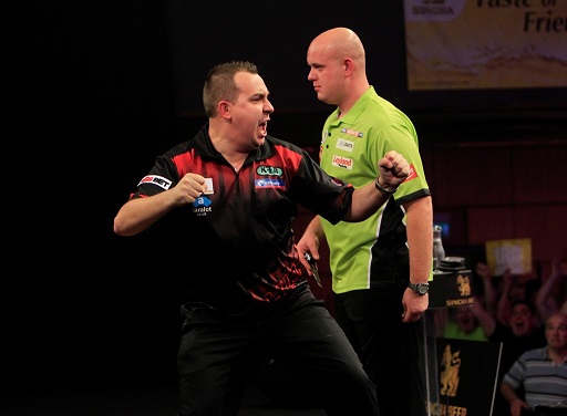 Van Gerwen had held throw to claim two of the opening three legs, but back-to-back 14-darters moved Huybrechts into a lead he would never relinquish.