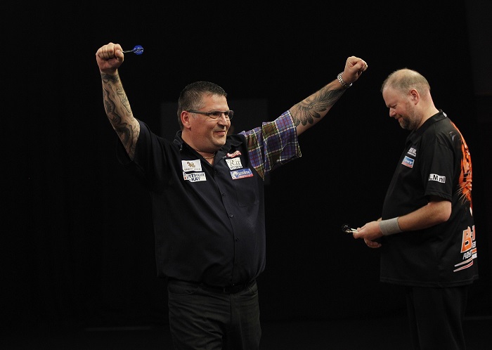 "I enjoyed it and even if I'd been beaten I would have because Barney was great," said Anderson. "He hit some great finishes but I stuck in there and kept going. Raymond has played well all through the tournament and he's back playing well. He missed a few darts at double but so did I and I let him in a few times, so I'm happy I got over it. I'm happy with the way my darts are going and it's starting to come good. This is my favourite tournament and it would be nice to get back in the final, but there's a lot of darts to be thrown before then."