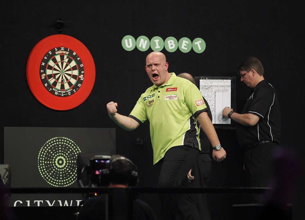 Wilson kicked off the game with a 156 checkout before van Gerwen took the next six without reply, and the Dutchman then came from two legs down in the third to complete the win.